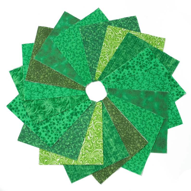 - 10 squares each of 9 tone-on-tone Greens in shades Greens