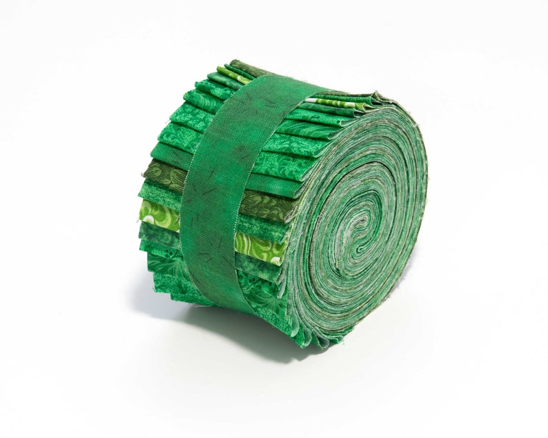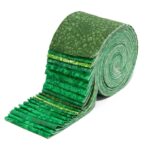 Each jelly roll includes 2 strips of each of the 9 designs in various beautiful tone-on-tone Beautiful Greens shades.