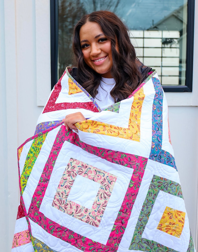 This comprehensive kit includes everything you need to craft a beautiful 59″ x 79″ quilt, featuring the charming Sadie Quilt pattern.